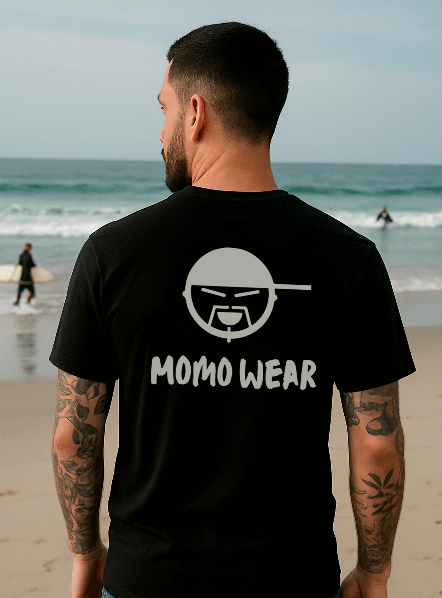 The MomoWear OG Tee is a clean hit of graphic heat—no filler, no filters. With the Support Local Bartenders badge on the front and a full-size, face-forward MomoWear logo on the back, this tee delivers heavyweight personality without saying a word.