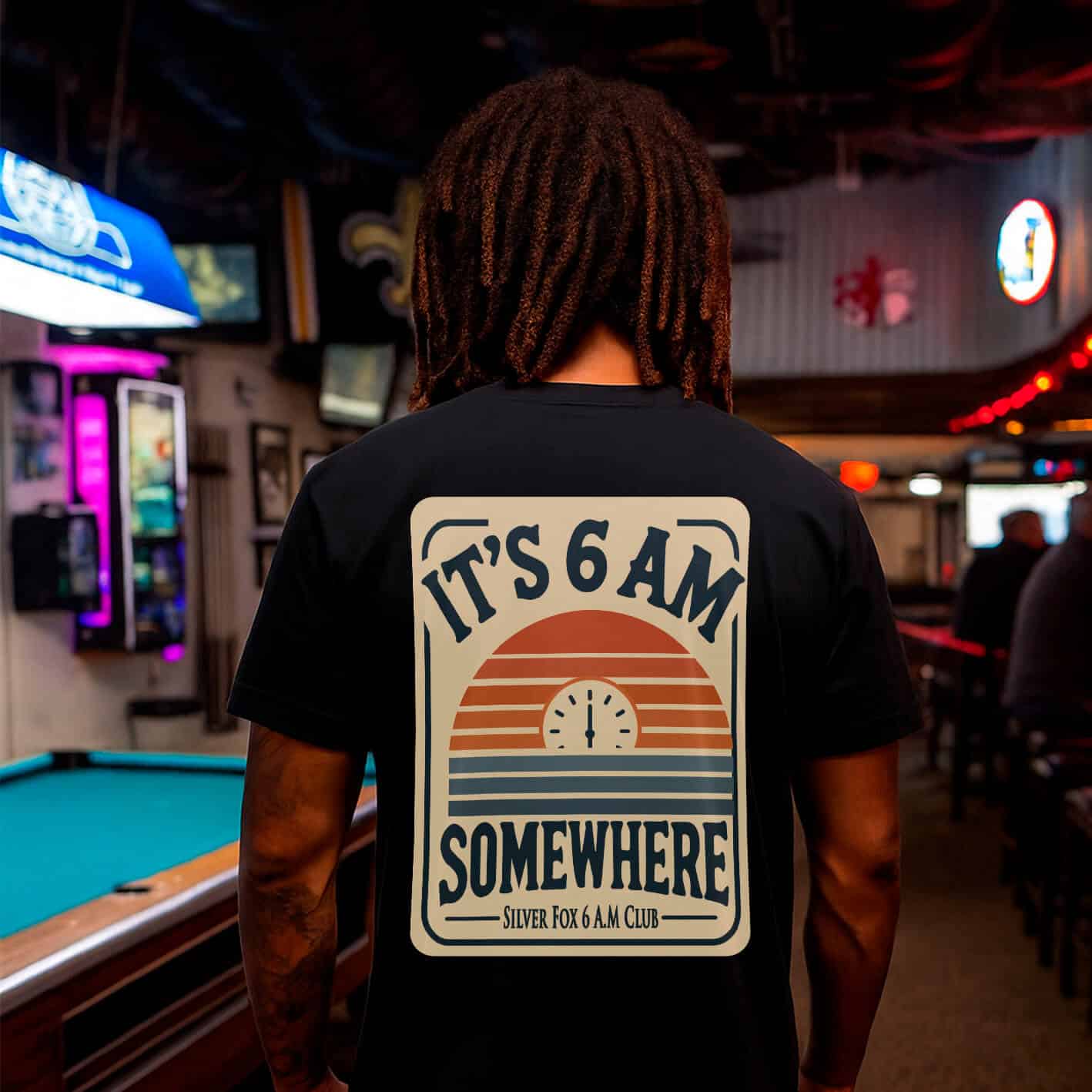 Support Local Bartenders print on the back—because this lifestyle supports more than just vibes.