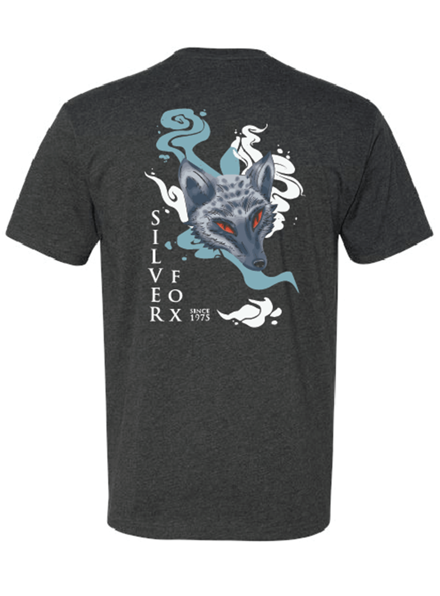 - Eye-catching silver fox graphic with swirling smoke