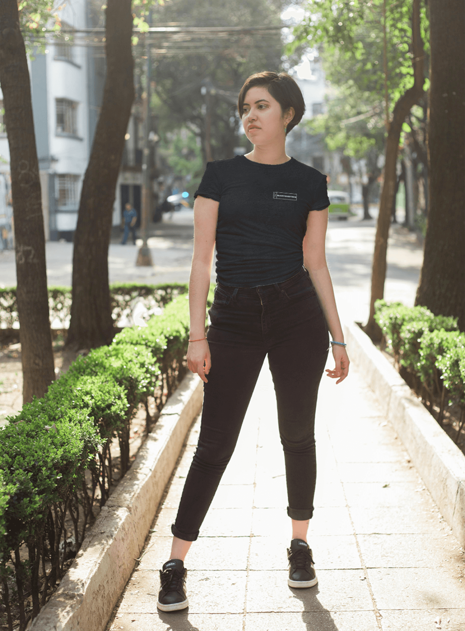 - Minimalist front logo and bold, artistic back design